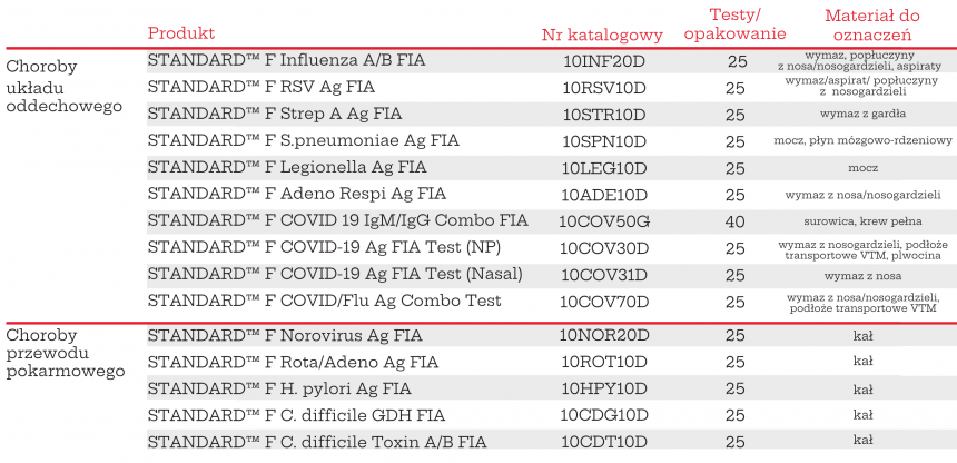 Wieloparametrowe menu zapewnia wykonywanie testów na choroby m.in. układu oddechowego i przewodu pokarmowego: