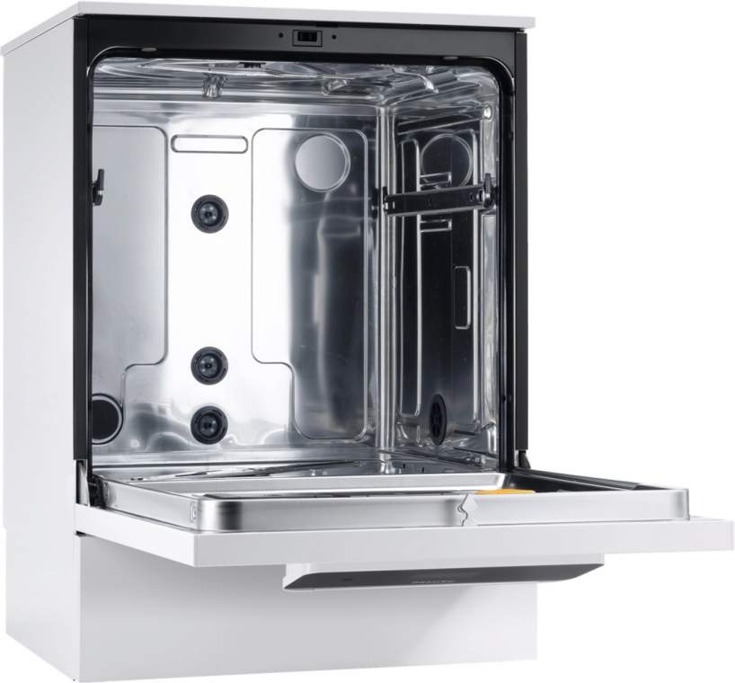 - Grzałki poza komorą mycia - higienicznie i praktycznie. Plus dla higieny: Elementy grzewcze są umieszczone poza komorą mycia.